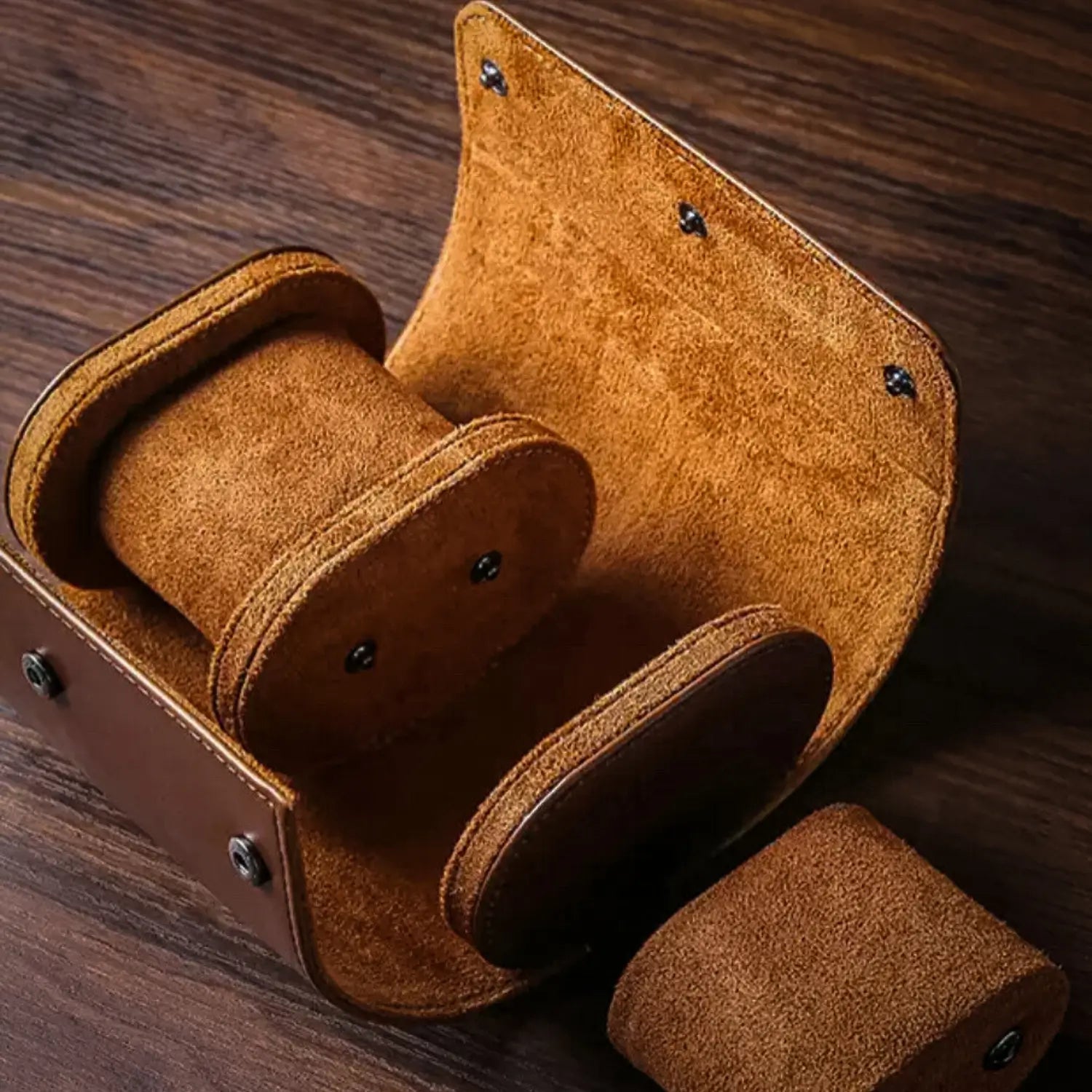 Confeccionada com o mais fino couro em sua parte externa, emana sofisticação e luxo. No interior, um revestimento aveludado proporciona o ambiente perfeito para acomodar cada relógio com delicadeza e cuidado.