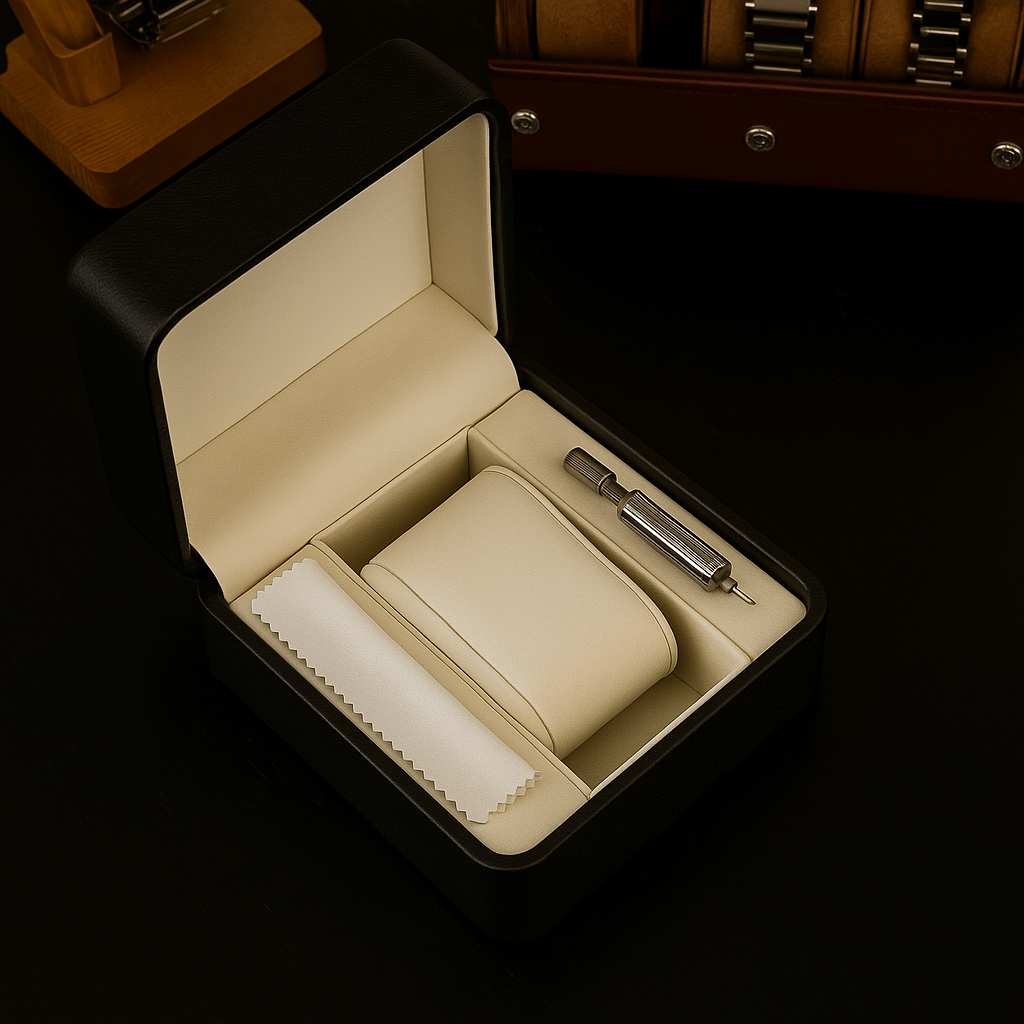 Caixa, Ajustador de Pulseira, Pano para Limpeza...