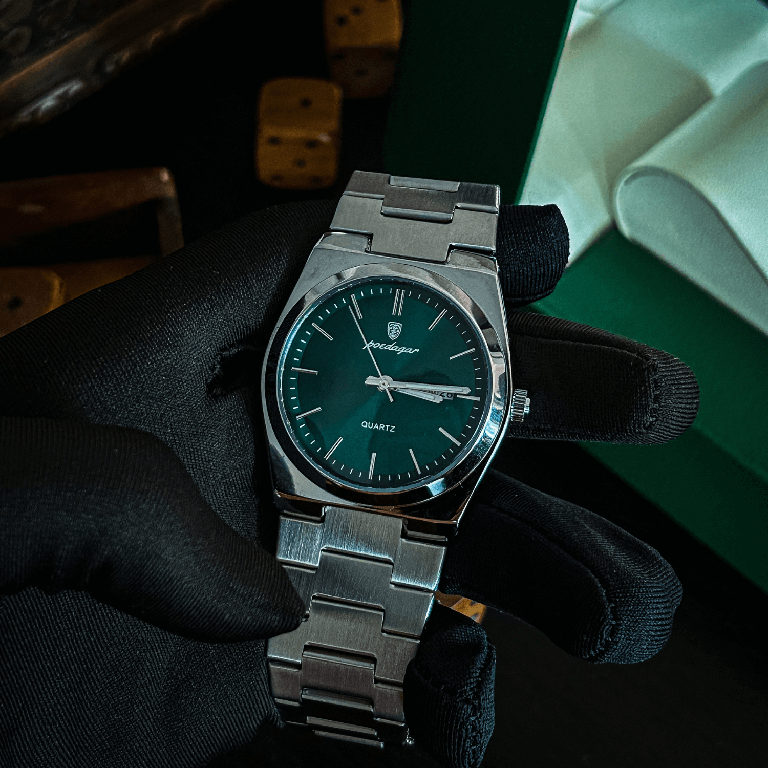 Cada peça Don Pellier é entregue em uma embalagem exclusiva, pensada para proporcionar uma experiência única desde o primeiro contato. Dentro da caixa, você encontra o relógio cuidadosamente protegido, um pano de limpeza premium para manter o brilho impecável e um ajustador de pulseira para garantir o encaixe perfeito ao seu pulso.