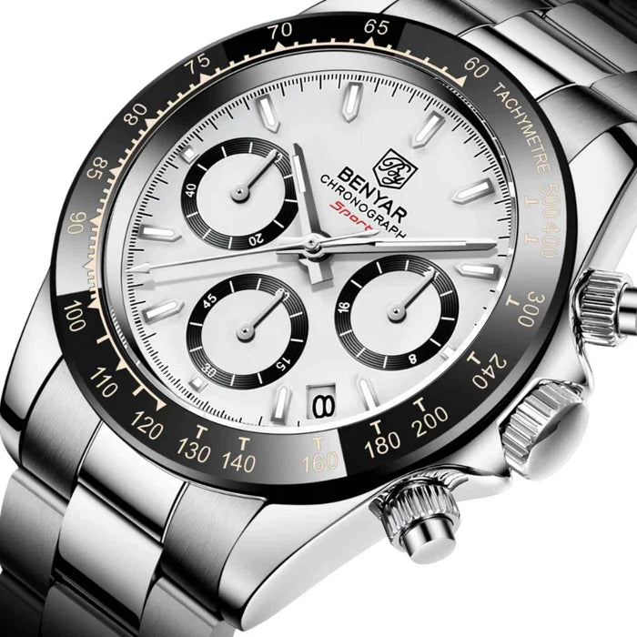Elegância e robustez em cada detalhe. O Don Pellier Cronogratto 40mm combina mostrador refinado, cronógrafos funcionais e pulseira em aço inox para entregar estilo e precisão. A escolha ideal para quem busca desempenho e sofisticação em um único relógio.